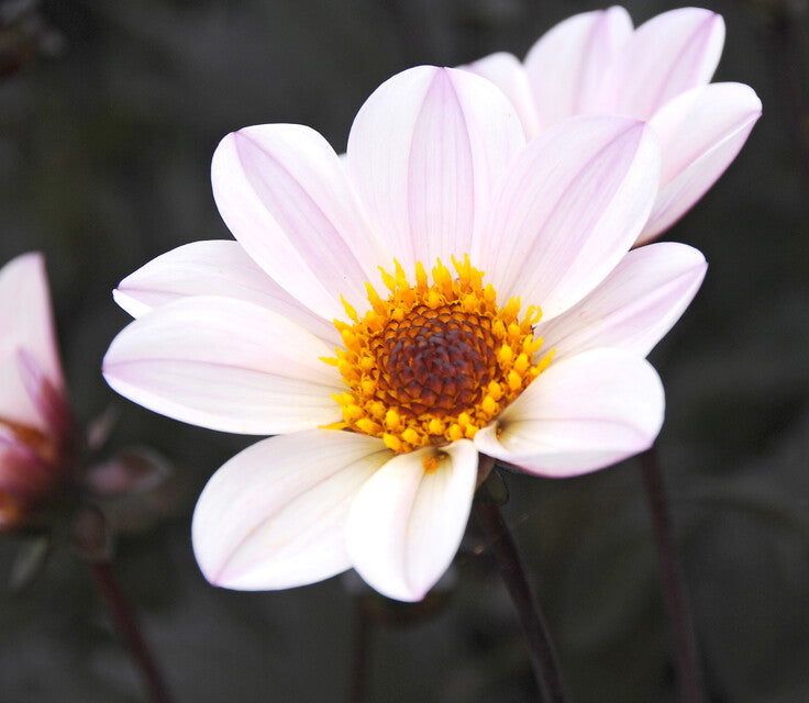 When planting dahlias, you can also consider bees and butterflies. There are plenty of open and single-flowered varieties (like this HS Flame) available that will delight bees and butterflies.